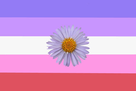 A: The flag was made by admin Winsor , it was made for this account to represent the MLM/NBLM community. The colours are heavily inspired by asters, the flower this account was named after. Each stripe has it's own meaning (the purple stripe represents wisdom , the white stripe represents purity and innocence , the red stripe represent undying devotion , the pink stripe represent sensitivity and love , and the blue stripe represents peace and serenity) .